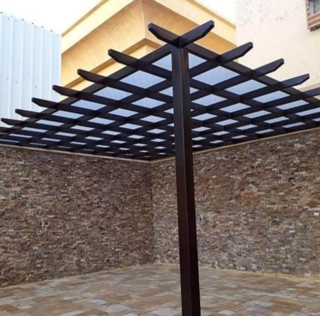 - مظلة سداسية: وتعتبر من المظلات الممتازة التي تساعد في الخصول على شكل ممتاز والتثبيت يتم من خلال استخدام مجموعة من قطع الحديد المختلفة.