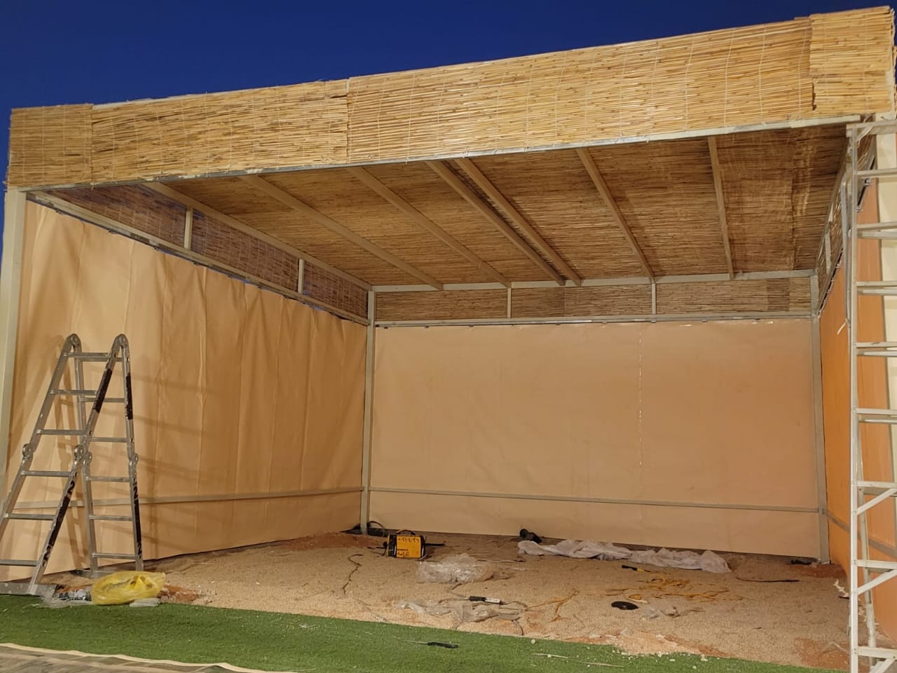 يقوم فريقنا بقياس الموقع بدقة لضمان أن تكون المظلة متناسبة تمامًا مع أبعاد الحدائق، الجلسات المنزلية، أو الاستراحات، دون أي فجوات أو انحرافات.تركيب هيكل متين وداعم: